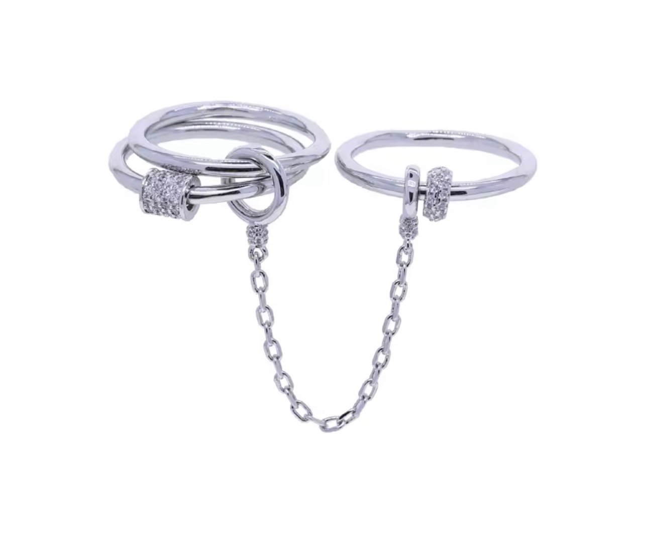 خاتم أنيق بتصميم سلسلة هندسية عصرية، مصنوع من فضة عالية الجودة ومطلية بطبقة فاخرة من الذهب الأبيض ليمنحك لمعان يدوم لفترة أطول.