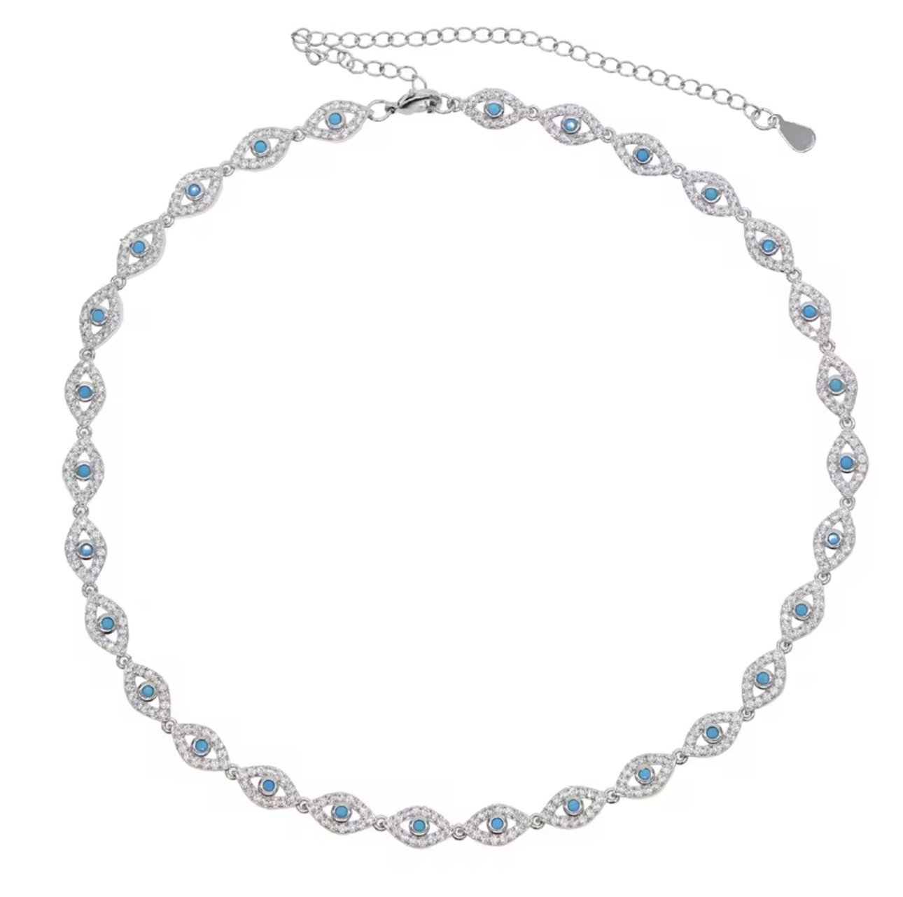 أضيفي لمسة حماية وأناقة لإطلالتك مع هذه القلادة المصنوعة من الفضة الخالصة والمزيّنة بفصوص زرقاء ناعمة داخل تصميم عين كلاسيكي يمنحك شعورًا بالثقة والطاقة الإيجابية.
